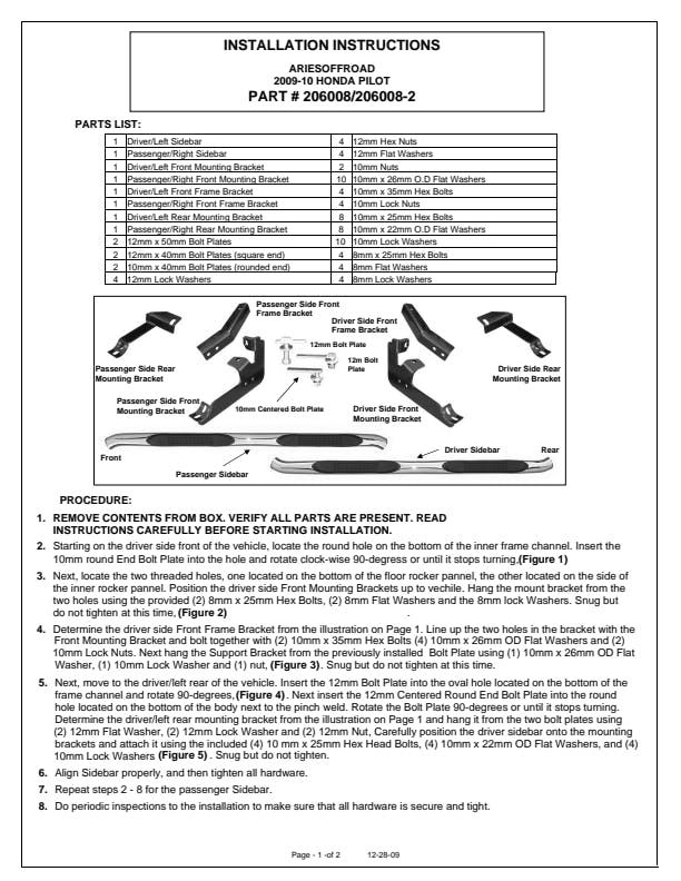 ARIES 3 in. side bars are more than a fancy decal for your truck, Jeep or SUV. They are a confident first step on each new adventure. These 3 in. nerf bars are constructed from strong carbon steel for superior rigidity, and they feature a sleek semi-gloss black powder coat finish. For an added edge, each nerf bar also goes through an E-coat process, before receiving its black powder coat, to strengthen and protect the final finish against peeling, chipping and scratching. ARIES 3 in. round side bars are also available in polished stainless steel or semi-gloss black powder-coated steel. All ARIES 3 in. nerf bars come with heavy-duty steel brackets and non-skid step pads. The mounting brackets are strong and custom-designed for specific makes and models to allow the side bars to contour to the lines of your vehicle. They offer easy installation and the strength necessary to provide sound footing. These particular custom nerf bars fit specific years of the Honda Pilot (see application info to verify fitment). ARIES 3 in. round side bars also come with non-skid step pads made of tough polypropylene. These step pads feature a textured pattern for enhanced safety, and they cover a wide portion of the tubes for a more comfortable step.